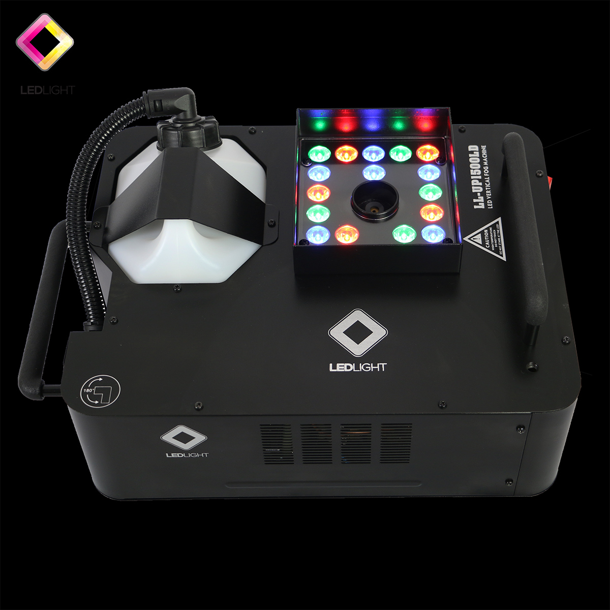 LL-UP1500LD é uma FOG MACHINE de LED vertical equipado com 21 LEDs (3W) com 3 cores diferentes (RGB) para simular o efeito do jato de CO2, ajustável para uso interno e externo.
